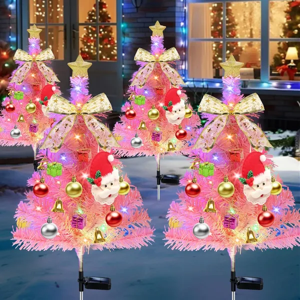 Home > 4 Pcs Solar Christmas Tree Pink, Outdoor Christmas Decorations, 80 LED Waterproof Solar Christmas Lights, Multicolor Xmas Tree Lights For Outside