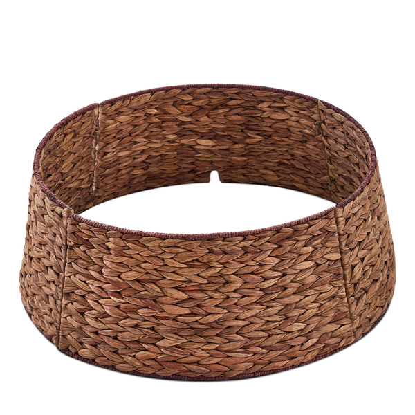 Home > Artisanal Woven Hyacinth Christmas Tree Collar - 28in Espresso Rattan & Wicker Tree Skirt/Base Cover